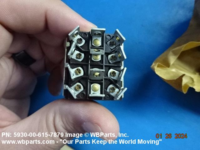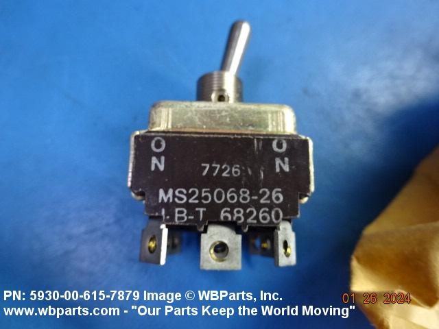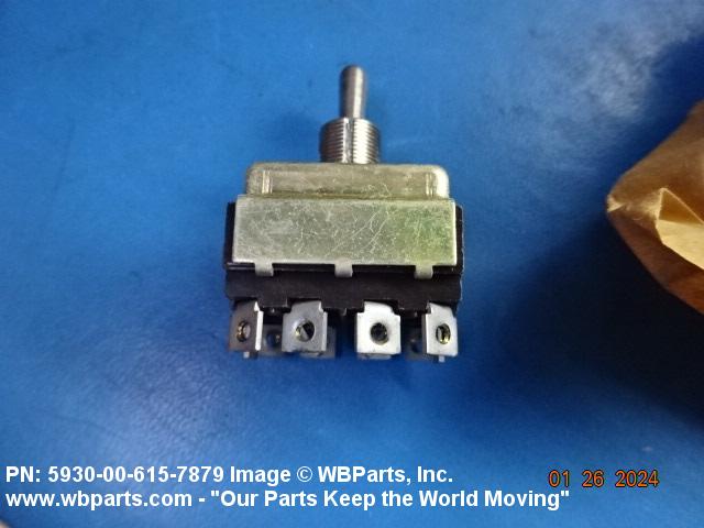 5930-00-615-7879 A switch which is externally actuated by a lever and whose contacts open and close with an instantaneous (snap) action; includes items having one or more momentary positions. Includes switches (snap action) which use mercury to bridge contacts, and assemblages of complete switches (snap action) having common actuators. Excludes SWITCH, LEVER; SWITCH, ROTARY; SWITCH, KNIFE; SWITCH, SENSITIVE; and SWITCH, BOX.