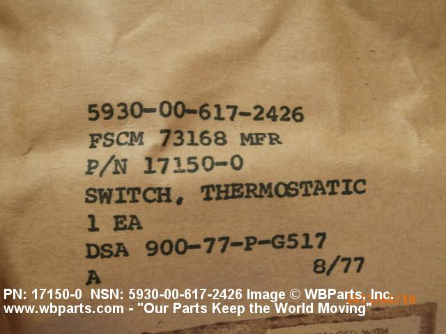 NSN 5930-00-617-2426 A7150, 832JRH, 1040495