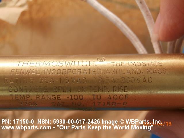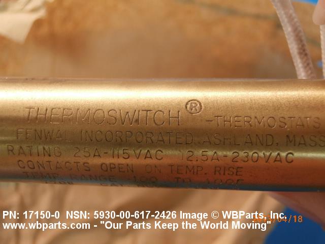 5930-00-617-2426 A switch that is actuated by changes in ambient temperature. Excludes CIRCUIT BREAKER; CONTROL, TEMPERATURE (as modified); FUSE (as modified); PROTECTOR, THERMAL-OVERLOAD, ELECTRICAL MOTOR; RELAY, THERMAL; and THERMOSTAT, FLOW CONTROL. See also CONTROL, TEMPERATURE (as modified) and REGULATOR, TEMPERATURE (as modified).