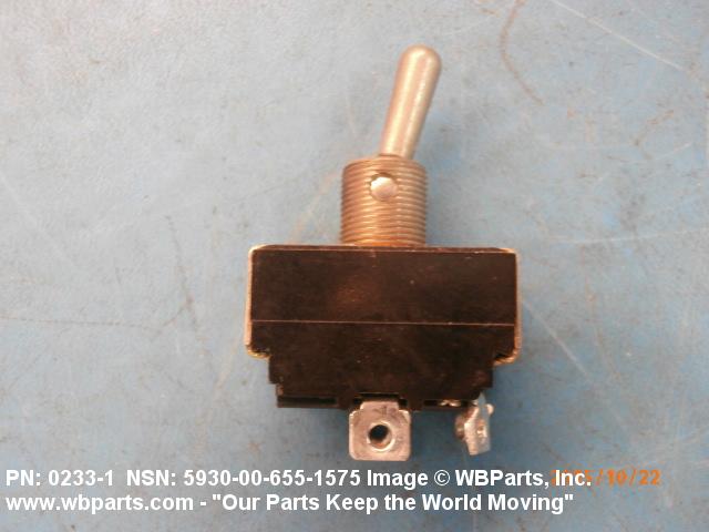 5930-00-655-1575 A switch which is externally actuated by a lever and whose contacts open and close with an instantaneous (snap) action; includes items having one or more momentary positions. Includes switches (snap action) which use mercury to bridge contacts, and assemblages of complete switches (snap action) having common actuators. Excludes SWITCH, LEVER; SWITCH, ROTARY; SWITCH, KNIFE; SWITCH, SENSITIVE; and SWITCH, BOX.