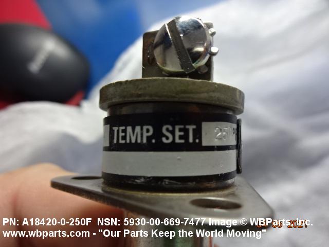 5930-00-669-7477 A switch that is actuated by changes in ambient temperature. Excludes CIRCUIT BREAKER; CONTROL, TEMPERATURE (as modified); FUSE (as modified); PROTECTOR, THERMAL-OVERLOAD, ELECTRICAL MOTOR; RELAY, THERMAL; and THERMOSTAT, FLOW CONTROL. See also CONTROL, TEMPERATURE (as modified) and REGULATOR, TEMPERATURE (as modified).
