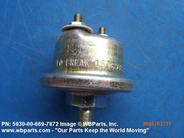 5930-00-669-7872 A switch which is actuated by changes in pressure of any gas or liquid or by changes in a vacuum acting upon its sensing element. Excludes BAROSWITCH; SWITCH, PRESSURE-THERMOSTATIC; and SWITCH, SENSITIVE.