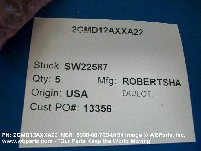 Part Alternates: JMP1001AL, JMP1001-AL, 101968, 10300969, 2CMD12AXXA22, 2CMD1-2AXXA22, 6210001, 62100-01, 802BA207246400, 802B-A-207-246400, 5930-00-729-8194, 00-729-8194, 5930007298194, 007298194