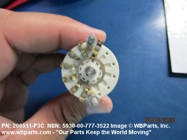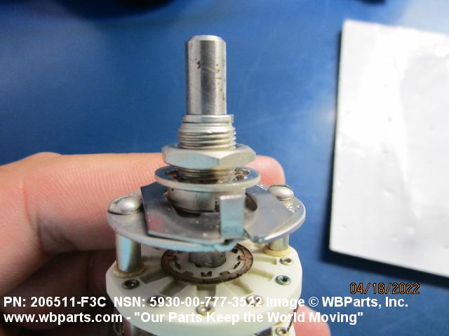 5930-00-777-3522 A switch actuated by a definite angular rotation of the switch shaft about its axis. For items having rated actuation travel and pressure characteristics, see SWITCH, SENSITIVE. Excludes RELAY, ROTARY; SWITCH, STEPPING; and SWITCH, TELEPHONE (as modified).