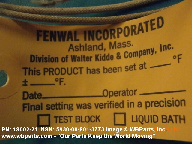 | 18002-21 | 73168 | KIDDE TECHNOLOGIES INC DBA FENWAL SAFETY SYSTEMS |