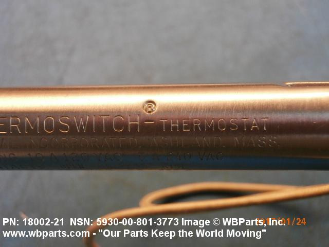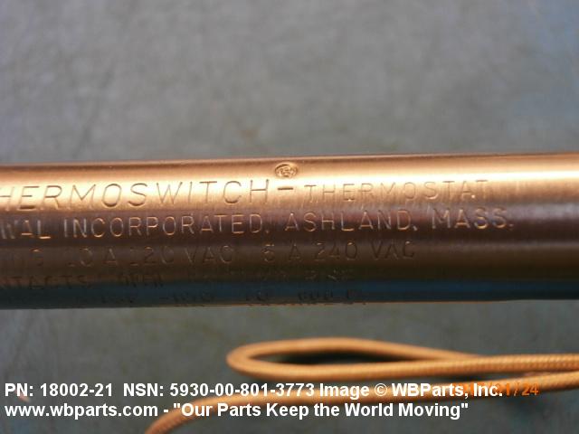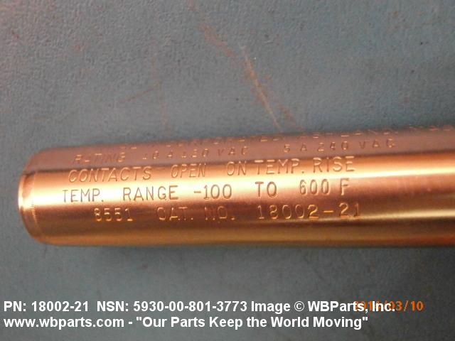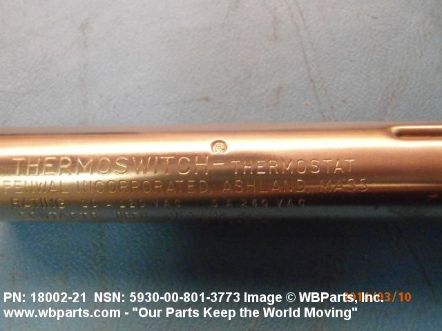 5930-00-801-3773 A switch that is actuated by changes in ambient temperature. Excludes CIRCUIT BREAKER; CONTROL, TEMPERATURE (as modified); FUSE (as modified); PROTECTOR, THERMAL-OVERLOAD, ELECTRICAL MOTOR; RELAY, THERMAL; and THERMOSTAT, FLOW CONTROL. See also CONTROL, TEMPERATURE (as modified) and REGULATOR, TEMPERATURE (as modified).