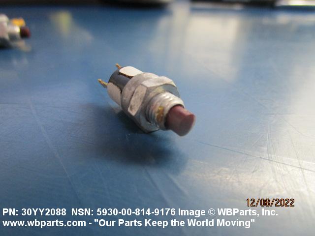 5930-00-814-9176 A switch that is externally actuated by a device such as a push rod or button, which requires pushing for each actuation. The action may be momentary, with mechanical return. The actuating device may or may not be an integral part of the switch. The item may include provisions for mounting indicating lamp(s) or light emitting diode(s) in the actuator. Includes items consisting of individually separable switches that are physically interlocked, that have a common actuator, or are electrically connected. Excludes LIGHT-SWITCH; LIGHT-SWITCH ASSEMBLY; SWITCH, BEAM SELECTING, HEADLIGHT; SWITCH, FOOT; SWITCH, INTERLOCK; SWITCH, PRESSURE; SWITCH, PUSH-PULL; SWITCH, SENSITIVE and SWITCH ASSEMBLY. For devices which start, stop, reverse, select and/or regulate the speed of a motor, see STARTER, MOTOR and CONTROLLER, MOTOR.