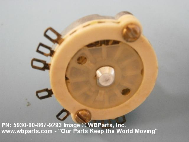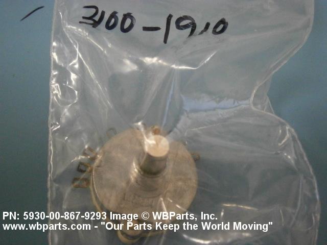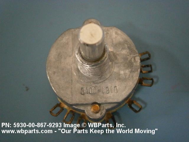 5930-00-867-9293 A switch actuated by a definite angular rotation of the switch shaft about its axis. For items having rated actuation travel and pressure characteristics, see SWITCH, SENSITIVE. Excludes RELAY, ROTARY; SWITCH, STEPPING; and SWITCH, TELEPHONE (as modified).