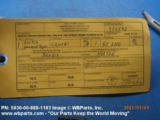 Part Alternates: CQ43A1, 5930-00-888-1183, 00-888-1183, 5930008881183, 008881183