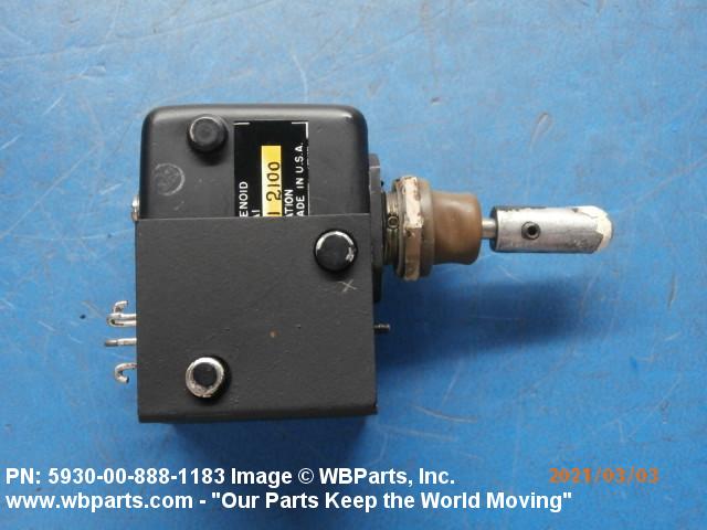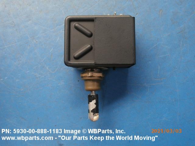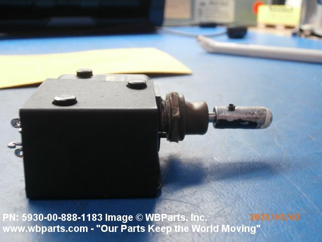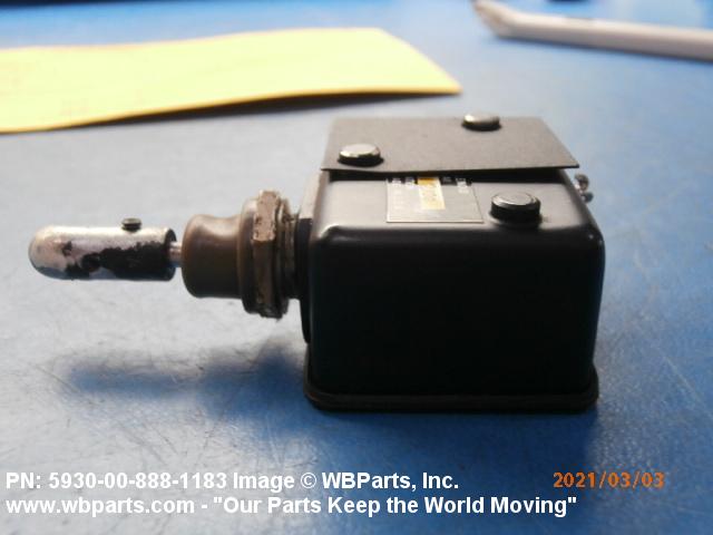 5930-00-888-1183 A switch which is externally actuated by a lever and whose contacts open and close with an instantaneous (snap) action; includes items having one or more momentary positions. Includes switches (snap action) which use mercury to bridge contacts, and assemblages of complete switches (snap action) having common actuators. Excludes SWITCH, LEVER; SWITCH, ROTARY; SWITCH, KNIFE; SWITCH, SENSITIVE; and SWITCH, BOX.