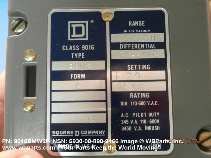 5930-00-890-9466 A switch which is actuated by changes in pressure of any gas or liquid or by changes in a vacuum acting upon its sensing element. Excludes BAROSWITCH; SWITCH, PRESSURE-THERMOSTATIC; and SWITCH, SENSITIVE.