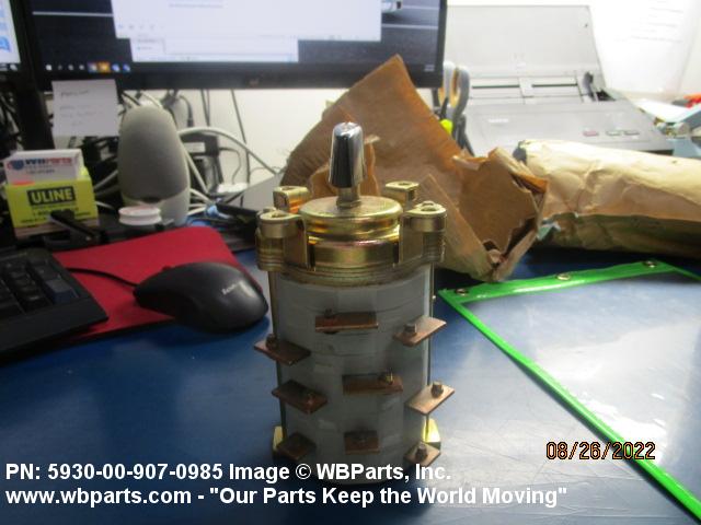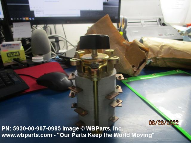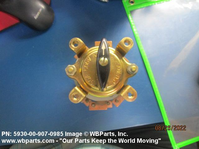 5930-00-907-0985 A switch actuated by a definite angular rotation of the switch shaft about its axis. For items having rated actuation travel and pressure characteristics, see SWITCH, SENSITIVE. Excludes RELAY, ROTARY; SWITCH, STEPPING; and SWITCH, TELEPHONE (as modified).