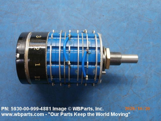 5930-00-999-4881 A switch actuated by a definite angular rotation of the switch shaft about its axis. For items having rated actuation travel and pressure characteristics, see SWITCH, SENSITIVE. Excludes RELAY, ROTARY; SWITCH, STEPPING; and SWITCH, TELEPHONE (as modified).
