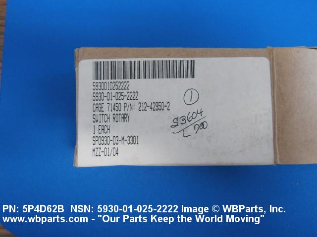 Part Alternates: 212-42950-2, 5129753, 512975-3, 5P4D62B, 5930-01-025-2222, 01-025-2222, 5930010252222, 212429502, 010252222