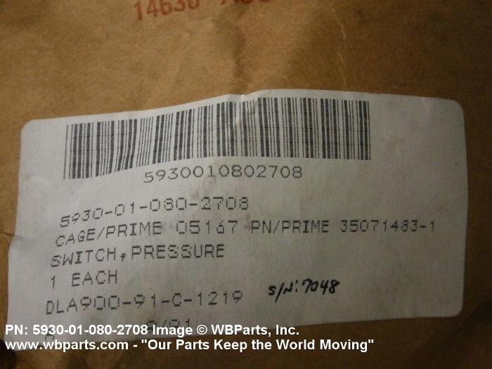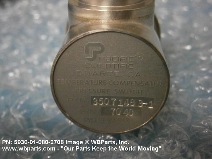 5930-01-080-2708 A switch which is actuated by changes in pressure of any gas or liquid or by changes in a vacuum acting upon its sensing element. Excludes BAROSWITCH; SWITCH, PRESSURE-THERMOSTATIC; and SWITCH, SENSITIVE.