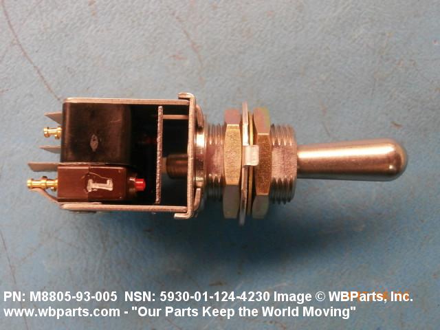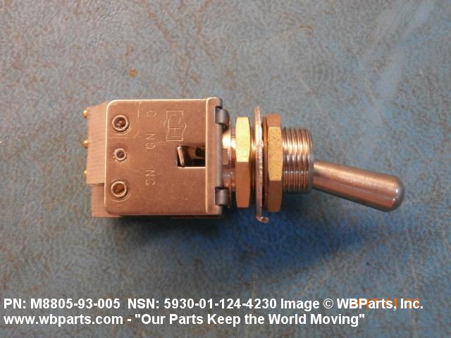 5930-01-124-4230 A switch which is externally actuated by a lever and whose contacts open and close with an instantaneous (snap) action; includes items having one or more momentary positions. Includes switches (snap action) which use mercury to bridge contacts, and assemblages of complete switches (snap action) having common actuators. Excludes SWITCH, LEVER; SWITCH, ROTARY; SWITCH, KNIFE; SWITCH, SENSITIVE; and SWITCH, BOX.
