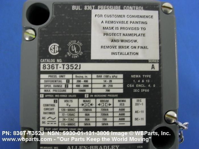 Part Alternates: 52B101981, 52-B-10198-1, 836TT352J, 836T-T352J, 9C004941, 9C00494-1, 5930-01-131-3806, 01-131-3806, 5930011313806, 011313806