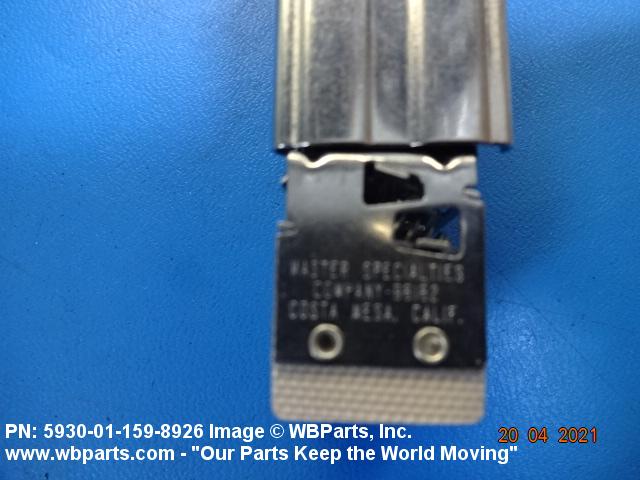 5930-01-159-8926 A switch that is externally actuated by a device such as a push rod or button, which requires pushing for each actuation. The action may be momentary, with mechanical return. The actuating device may or may not be an integral part of the switch. The item may include provisions for mounting indicating lamp(s) or light emitting diode(s) in the actuator. Includes items consisting of individually separable switches that are physically interlocked, that have a common actuator, or are electrically connected. Excludes LIGHT-SWITCH; LIGHT-SWITCH ASSEMBLY; SWITCH, BEAM SELECTING, HEADLIGHT; SWITCH, FOOT; SWITCH, INTERLOCK; SWITCH, PRESSURE; SWITCH, PUSH-PULL; SWITCH, SENSITIVE and SWITCH ASSEMBLY. For devices which start, stop, reverse, select and/or regulate the speed of a motor, see STARTER, MOTOR and CONTROLLER, MOTOR.