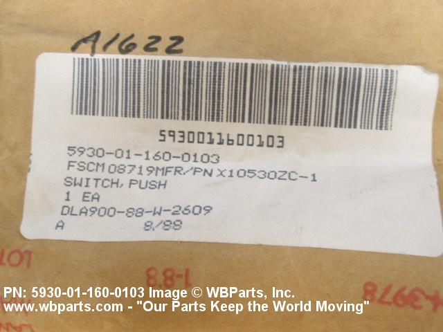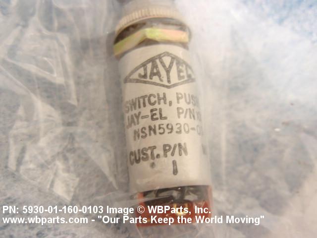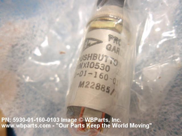 5930-01-160-0103 A switch that is externally actuated by a device such as a push rod or button, which requires pushing for each actuation. The action may be momentary, with mechanical return. The actuating device may or may not be an integral part of the switch. The item may include provisions for mounting indicating lamp(s) or light emitting diode(s) in the actuator. Includes items consisting of individually separable switches that are physically interlocked, that have a common actuator, or are electrically connected. Excludes LIGHT-SWITCH; LIGHT-SWITCH ASSEMBLY; SWITCH, BEAM SELECTING, HEADLIGHT; SWITCH, FOOT; SWITCH, INTERLOCK; SWITCH, PRESSURE; SWITCH, PUSH-PULL; SWITCH, SENSITIVE and SWITCH ASSEMBLY. For devices which start, stop, reverse, select and/or regulate the speed of a motor, see STARTER, MOTOR and CONTROLLER, MOTOR.