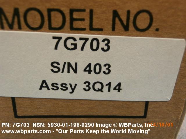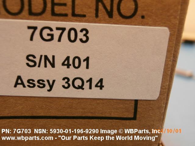 Part Alternates: 7G703, 5930-01-196-9290, 01-196-9290, 5930011969290, 011969290