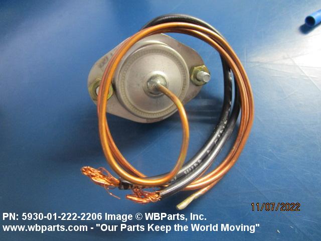5930-01-222-2206 A switch that is actuated by changes in ambient temperature. Excludes CIRCUIT BREAKER; CONTROL, TEMPERATURE (as modified); FUSE (as modified); PROTECTOR, THERMAL-OVERLOAD, ELECTRICAL MOTOR; RELAY, THERMAL; and THERMOSTAT, FLOW CONTROL. See also CONTROL, TEMPERATURE (as modified) and REGULATOR, TEMPERATURE (as modified).