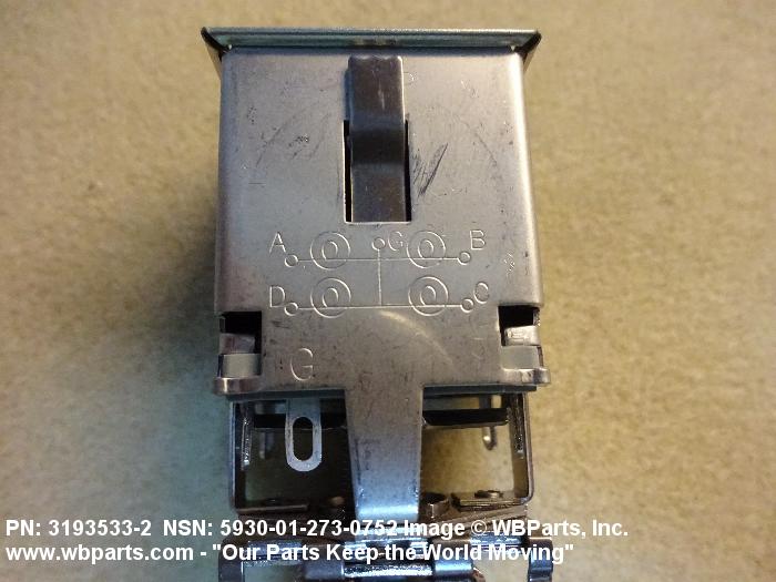 5930-01-273-0752 A switch that is externally actuated by a device such as a push rod or button, which requires pushing for each actuation. The action may be momentary, with mechanical return. The actuating device may or may not be an integral part of the switch. The item may include provisions for mounting indicating lamp(s) or light emitting diode(s) in the actuator. Includes items consisting of individually separable switches that are physically interlocked, that have a common actuator, or are electrically connected. Excludes LIGHT-SWITCH; LIGHT-SWITCH ASSEMBLY; SWITCH, BEAM SELECTING, HEADLIGHT; SWITCH, FOOT; SWITCH, INTERLOCK; SWITCH, PRESSURE; SWITCH, PUSH-PULL; SWITCH, SENSITIVE and SWITCH ASSEMBLY. For devices which start, stop, reverse, select and/or regulate the speed of a motor, see STARTER, MOTOR and CONTROLLER, MOTOR.