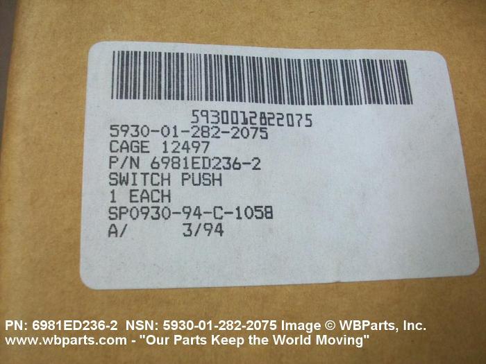 Part Alternates: 6981ED2362, 6981ED236-2, 5930-01-282-2075, 01-282-2075, 5930012822075, 012822075