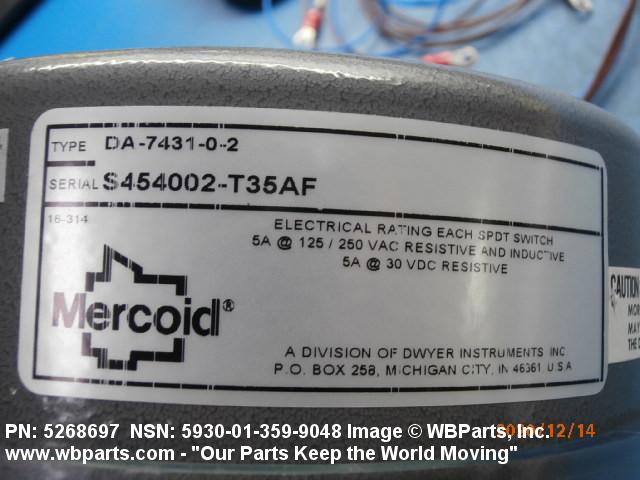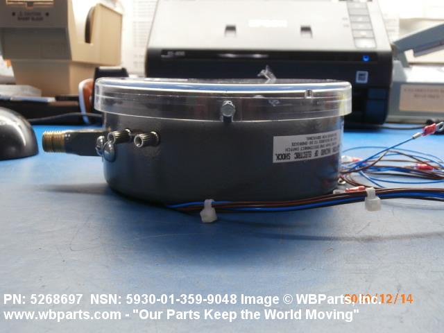 5930-01-359-9048 A switch which is actuated by changes in pressure of any gas or liquid or by changes in a vacuum acting upon its sensing element. Excludes BAROSWITCH; SWITCH, PRESSURE-THERMOSTATIC; and SWITCH, SENSITIVE.