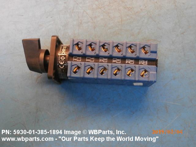 5930-01-385-1894 A switch actuated by a definite angular rotation of the switch shaft about its axis. For items having rated actuation travel and pressure characteristics, see SWITCH, SENSITIVE. Excludes RELAY, ROTARY; SWITCH, STEPPING; and SWITCH, TELEPHONE (as modified).