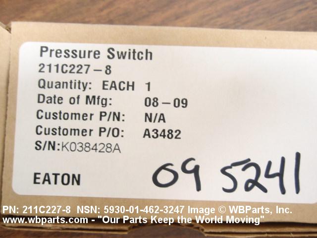 5930-01-462-3247 A switch which is actuated by changes in pressure of any gas or liquid or by changes in a vacuum acting upon its sensing element. Excludes BAROSWITCH; SWITCH, PRESSURE-THERMOSTATIC; and SWITCH, SENSITIVE.