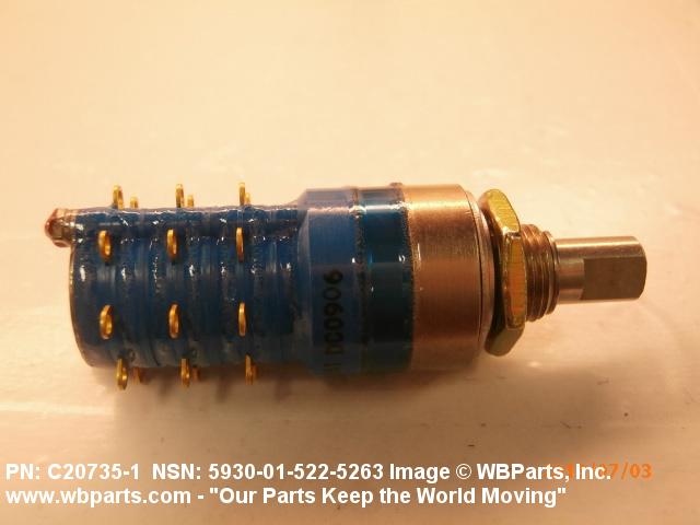 5930-01-522-5263 A switch actuated by a definite angular rotation of the switch shaft about its axis. For items having rated actuation travel and pressure characteristics, see SWITCH, SENSITIVE. Excludes RELAY, ROTARY; SWITCH, STEPPING; and SWITCH, TELEPHONE (as modified).