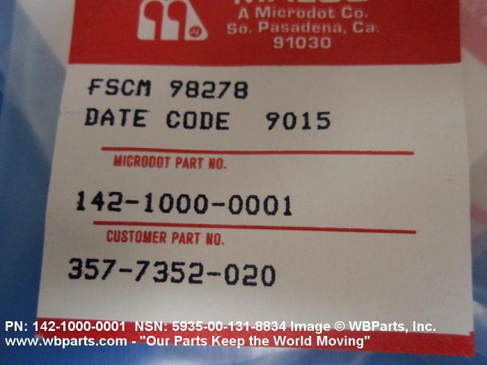 Part Alternates: 14210000001, 142-1000-0001, 1421000001, 142-1000-001, 3577352020, 357-7352-020, 5935-00-131-8834, 00-131-8834, 5935001318834, 001318834