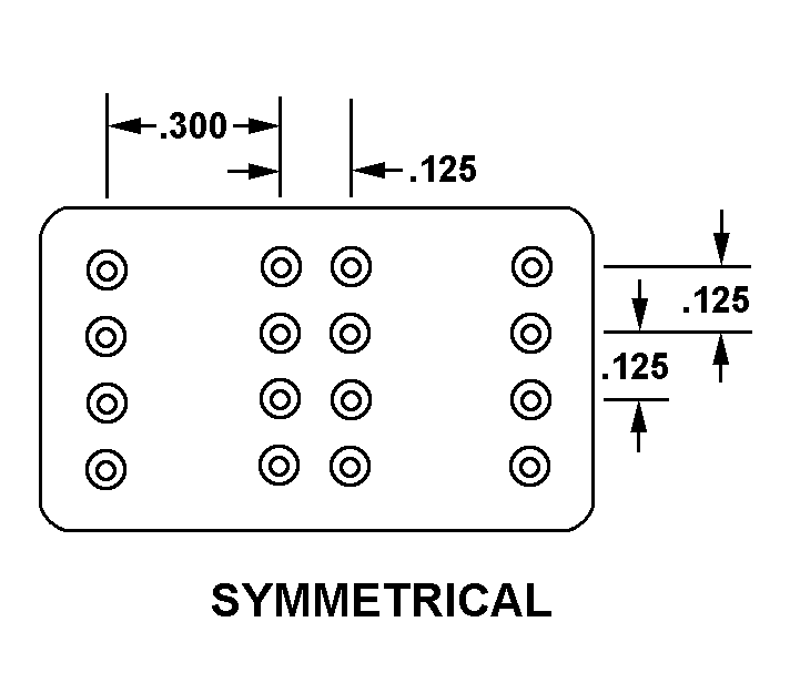 | CENTER TO CENTER DISTANCE BETWEEN OUTSIDE MOUNTING HOLES ALONG WIDTH | 0.300 INCHES NOMINAL |