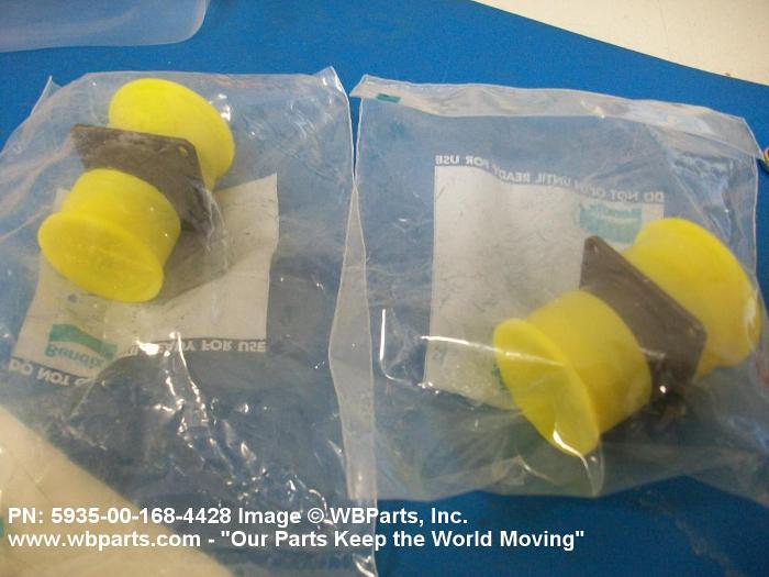 5935-00-168-4428 An electrical fitting with electrical contacts constructed to be affixed to the end of a cable, conduit, coaxial line, cord, wire (includes printed/etched), PRINTED WIRING BOARD, or the like for convenience in joining with another electrical connector(s) or PRINTED WIRING BOARD. It is designed to be mounted on a bulkhead, chassis, panel, wall, PRINTED WIRING BOARD, or the like. Excludes LAMPHOLDER; JACK, TELEPHONE; JACK, TIP; INSERT ELECTRICAL CONNECTOR; INSERT MODULE, ELECTRICAL CONNECTOR; CONNECTOR BODY (as modified) and SOCKET, PLUG-IN ELECTRONIC COMPONENTS. See also WIRING HARNESS (as modified) and CABLE ASSEMBLY (as modified). For items with termination wires of more than four inches in length, see LEAD ASSEMBLY, ELECTRICAL. For items without inserts, see SHELL, ELECTRICAL CONNECTOR.