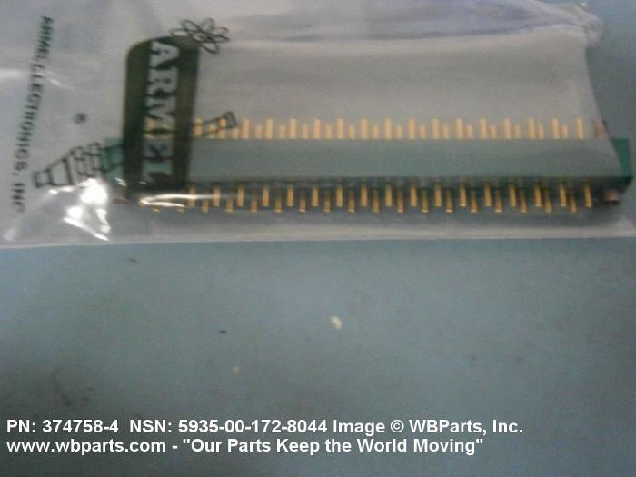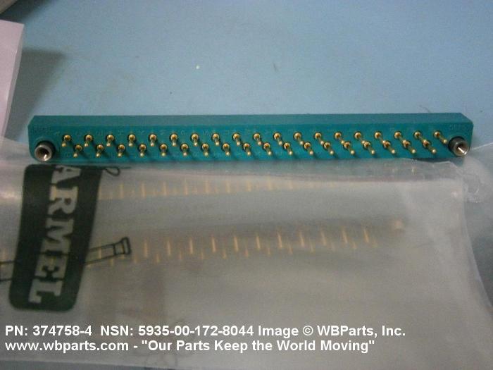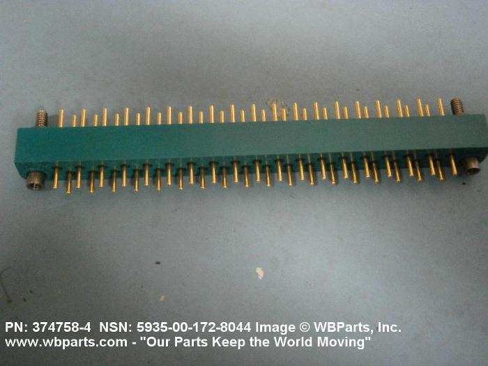 5935-00-172-8044 An electrical fitting with electrical contacts constructed to be affixed to the end of a cable, conduit, coaxial line, cord, wire (includes printed/etched), PRINTED WIRING BOARD, or the like for convenience in joining with another electrical connector(s) or PRINTED WIRING BOARD. It is designed to be mounted on a bulkhead, chassis, panel, wall, PRINTED WIRING BOARD, or the like. Excludes LAMPHOLDER; JACK, TELEPHONE; JACK, TIP; INSERT ELECTRICAL CONNECTOR; INSERT MODULE, ELECTRICAL CONNECTOR; CONNECTOR BODY (as modified) and SOCKET, PLUG-IN ELECTRONIC COMPONENTS. See also WIRING HARNESS (as modified) and CABLE ASSEMBLY (as modified). For items with termination wires of more than four inches in length, see LEAD ASSEMBLY, ELECTRICAL. For items without inserts, see SHELL, ELECTRICAL CONNECTOR.