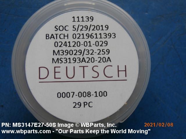 | DEFINITIVE GOVERNMENT SPEC/STD REFERENCE | MS3147E27-50S |