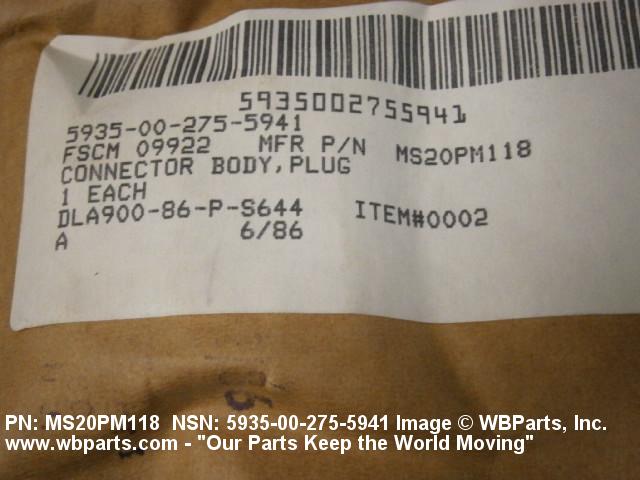 NSN 5935-00-275-5941 MS20P105, MS20PM118, 70941341003