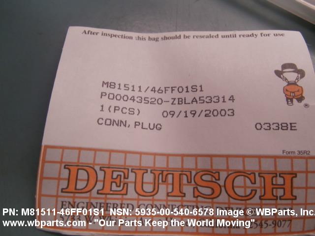NSN 5935-00-540-6578 M81511/46FF01S1, M8151146FF01S1, MILC8151146