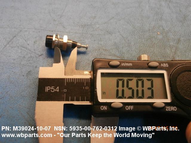 5935-00-762-0312 An electrical fitting with a female contact arranged for the insertion of a PLUG, TIP or a TIP, TEST PROD. It has a single facility for attachment of a conductor or facility for circuit connection through its mounting provisions. The item may or may not be insulated. Excludes multisection types each section of which consists of a single contact spring or telephone-type jack. Excludes CONNECTOR, RECEPTACLE ELECTRICAL; JACK, TELEPHONE; JACK ASSEMBLY, TIP; and POST, BINDING.