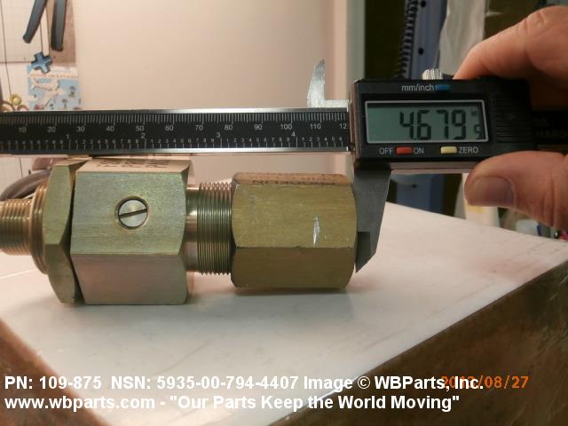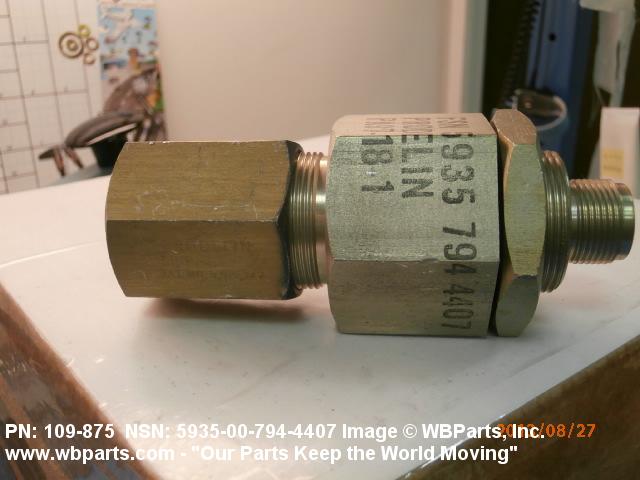5935-00-794-4407 An electrical fitting with electrical contacts constructed to be affixed to the end of a cable, conduit, coaxial line, cord, wire (includes printed/etched), PRINTED WIRING BOARD, or the like for convenience in joining with another electrical connector(s) or PRINTED WIRING BOARD. It is designed to be mounted on a bulkhead, chassis, panel, wall, PRINTED WIRING BOARD, or the like. Excludes LAMPHOLDER; JACK, TELEPHONE; JACK, TIP; INSERT ELECTRICAL CONNECTOR; INSERT MODULE, ELECTRICAL CONNECTOR; CONNECTOR BODY (as modified) and SOCKET, PLUG-IN ELECTRONIC COMPONENTS. See also WIRING HARNESS (as modified) and CABLE ASSEMBLY (as modified). For items with termination wires of more than four inches in length, see LEAD ASSEMBLY, ELECTRICAL. For items without inserts, see SHELL, ELECTRICAL CONNECTOR.