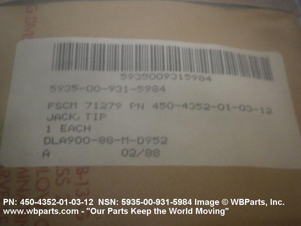 Part Alternates: 450-4352-01-03-12, 53060853, 5306085-3, 5360843, 536084-3, 5360853, 536085-3, 09901110312, 09-9011-1-0312, 4352-1-0312, 8423720198, 842372-0198, 5935-00-931-5984, 00-931-5984, 4504352010312, 5935009315984, 009315984, 435210312