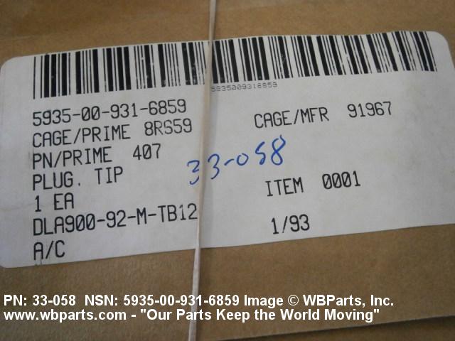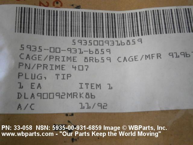 Part Alternates: 2761483P2, 276-1483P2, 33058, 33-058, 407, 5935-00-931-6859, 00-931-6859, 5935009316859, 009316859
