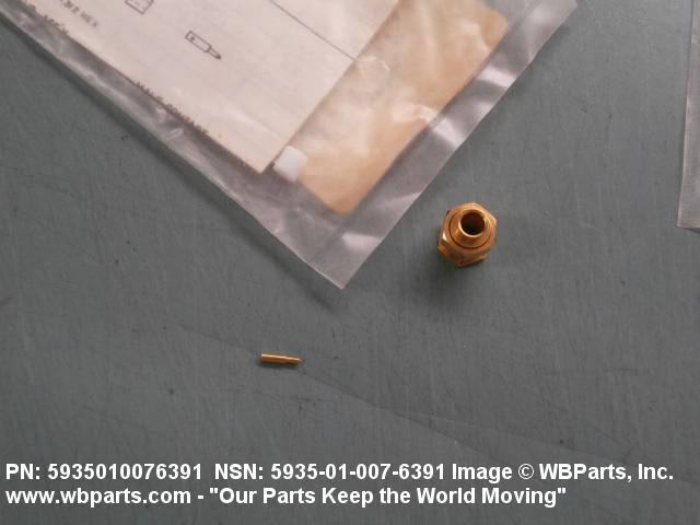 5935-01-007-6391 An electrical fitting with electrical contacts, constructed to be affixed to the end of a cable, conduit, coaxial line, cord or wiring for convenience in joining with other electrical connector(s) or PRINTED WIRING BOARD and is not designed to be mounted on a bulkhead, chasses, panel, PRINTED WIRING BOARD, or the like. Excludes JACK, TELEPHONE; JACK, TIP; PLUG, TELEPHONE; PLUG TIP; INSERT, ELECTRICAL CONNECTOR; CONNECTOR BODY (as modified); and SOCKET, PLUG-IN, ELECTRONIC COMPONENTS. See also LEAD ASSEMBLY, ELECTRICAL; WIRING HARNESS (as modified); and CABLE ASSEMBLY (as modified). For items without inserts, see SHELL, ELECTRICAL CONNECTOR.
