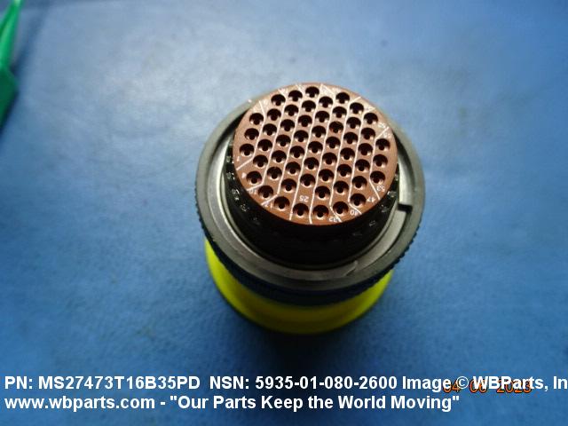 Part Alternates: MS27473T16B35PD, JT06RT16B35PD, JT06RT-16B-35PD, KJ6-A/BT16B35PD, KJ6ABT16B35PD, MILC38999, MIL-C-38999, 41826T16B35PD, 418-26T16B-35PD, 5935-01-080-2600, 01-080-2600, 5935010802600, 010802600