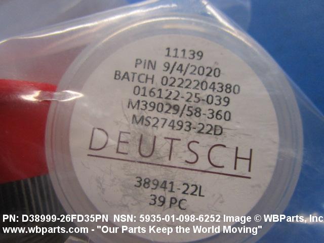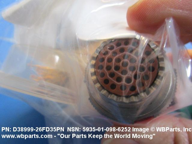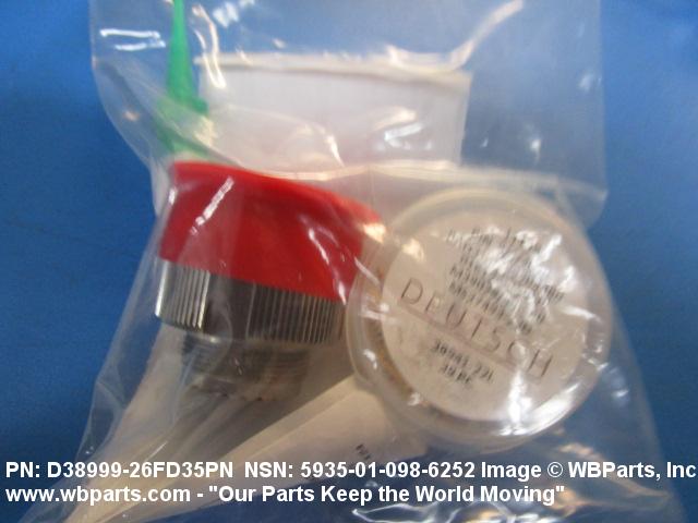 Part Alternates: D38999/26FD35PN, D3899926FD35PN, MIL-C-38999/26, MILC3899926, MIL-DTL-38999/26, MILDTL3899926, 5935-01-098-6252, 01-098-6252, 5935010986252, 010986252