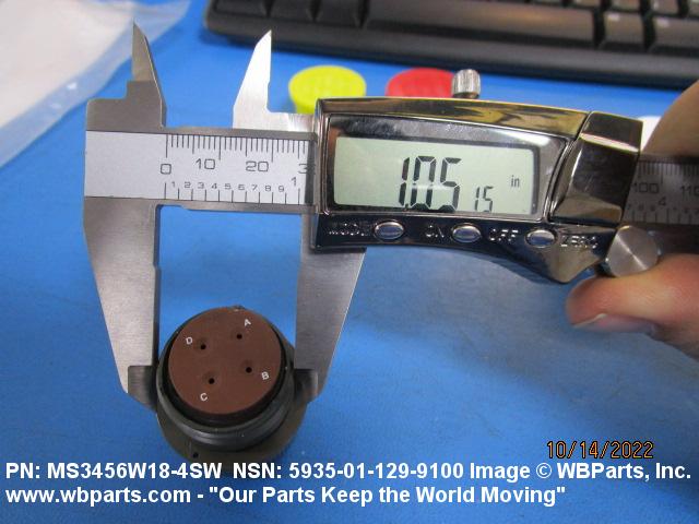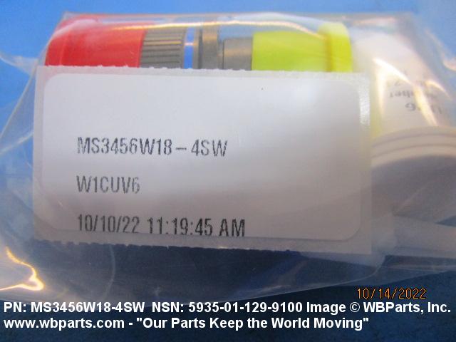 Part Alternates: MS3106R184SW, MS3106R18-4SW, MS3106R184SWC, MS3106R18-4SWC, MS3456L184SW, MS3456L18-4SW, MS3456W184SW, MS3456W-18-4SW , MS3456W18-4SW, NS3456W184SW, NS3456W18-4SW , AS50151 , MILC5015, MIL-C-5015, 80807340, 808073-40, 4118735345, 4118735-345, 5935-01-129-9100, 01-129-9100, 5935011299100, 011299100