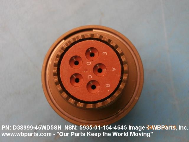 Part Alternates: D38999/46WD5SN, D3899946WD5SN, DOD-C-38999/46, DODC3899946, 5935-01-154-4645, 01-154-4645, 5935011544645, 011544645