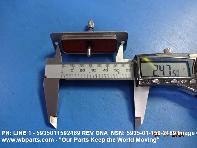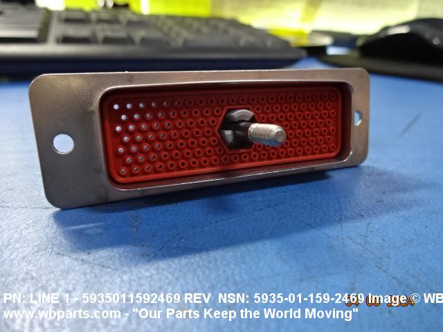 5935-01-159-2469 An electrical fitting with electrical contacts constructed to be affixed to the end of a cable, conduit, coaxial line, cord, wire (includes printed/etched), PRINTED WIRING BOARD, or the like for convenience in joining with another electrical connector(s) or PRINTED WIRING BOARD. It is designed to be mounted on a bulkhead, chassis, panel, wall, PRINTED WIRING BOARD, or the like. Excludes LAMPHOLDER; JACK, TELEPHONE; JACK, TIP; INSERT ELECTRICAL CONNECTOR; INSERT MODULE, ELECTRICAL CONNECTOR; CONNECTOR BODY (as modified) and SOCKET, PLUG-IN ELECTRONIC COMPONENTS. See also WIRING HARNESS (as modified) and CABLE ASSEMBLY (as modified). For items with termination wires of more than four inches in length, see LEAD ASSEMBLY, ELECTRICAL. For items without inserts, see SHELL, ELECTRICAL CONNECTOR.