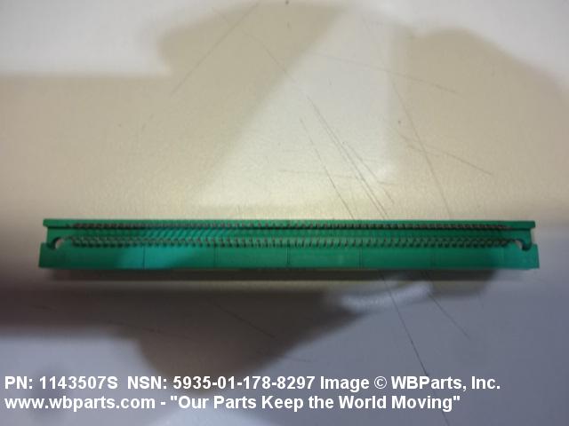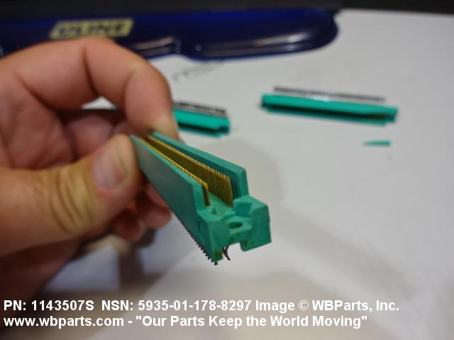 5935-01-178-8297 An electrical fitting with electrical contacts constructed to be affixed to the end of a cable, conduit, coaxial line, cord, wire (includes printed/etched), PRINTED WIRING BOARD, or the like for convenience in joining with another electrical connector(s) or PRINTED WIRING BOARD. It is designed to be mounted on a bulkhead, chassis, panel, wall, PRINTED WIRING BOARD, or the like. Excludes LAMPHOLDER; JACK, TELEPHONE; JACK, TIP; INSERT ELECTRICAL CONNECTOR; INSERT MODULE, ELECTRICAL CONNECTOR; CONNECTOR BODY (as modified) and SOCKET, PLUG-IN ELECTRONIC COMPONENTS. See also WIRING HARNESS (as modified) and CABLE ASSEMBLY (as modified). For items with termination wires of more than four inches in length, see LEAD ASSEMBLY, ELECTRICAL. For items without inserts, see SHELL, ELECTRICAL CONNECTOR.