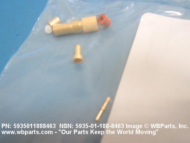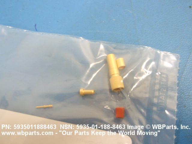 5935-01-188-8463 An electrical fitting with electrical contacts, constructed to be affixed to the end of a cable, conduit, coaxial line, cord or wiring for convenience in joining with other electrical connector(s) or PRINTED WIRING BOARD and is not designed to be mounted on a bulkhead, chasses, panel, PRINTED WIRING BOARD, or the like. Excludes JACK, TELEPHONE; JACK, TIP; PLUG, TELEPHONE; PLUG TIP; INSERT, ELECTRICAL CONNECTOR; CONNECTOR BODY (as modified); and SOCKET, PLUG-IN, ELECTRONIC COMPONENTS. See also LEAD ASSEMBLY, ELECTRICAL; WIRING HARNESS (as modified); and CABLE ASSEMBLY (as modified). For items without inserts, see SHELL, ELECTRICAL CONNECTOR.
